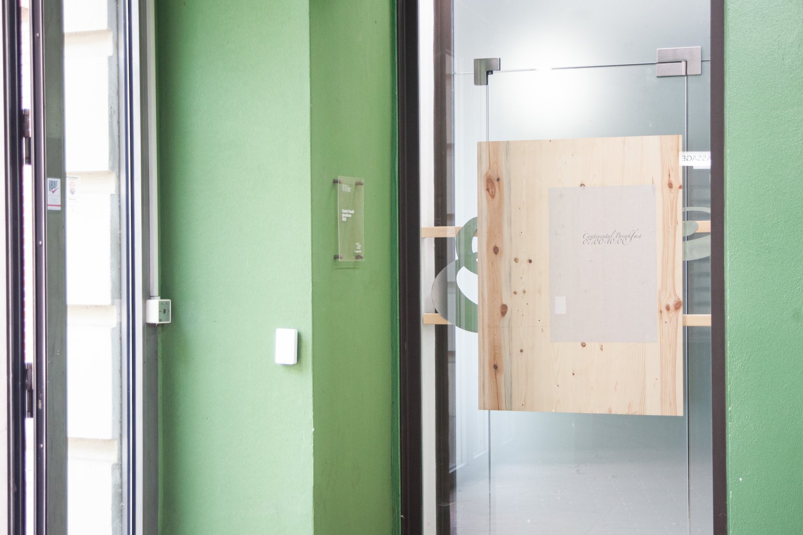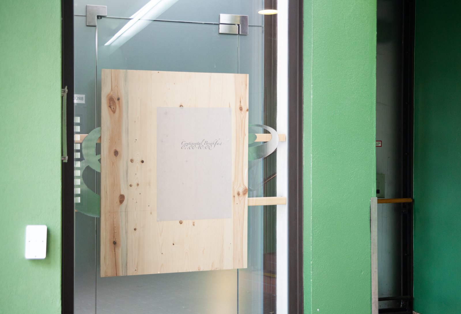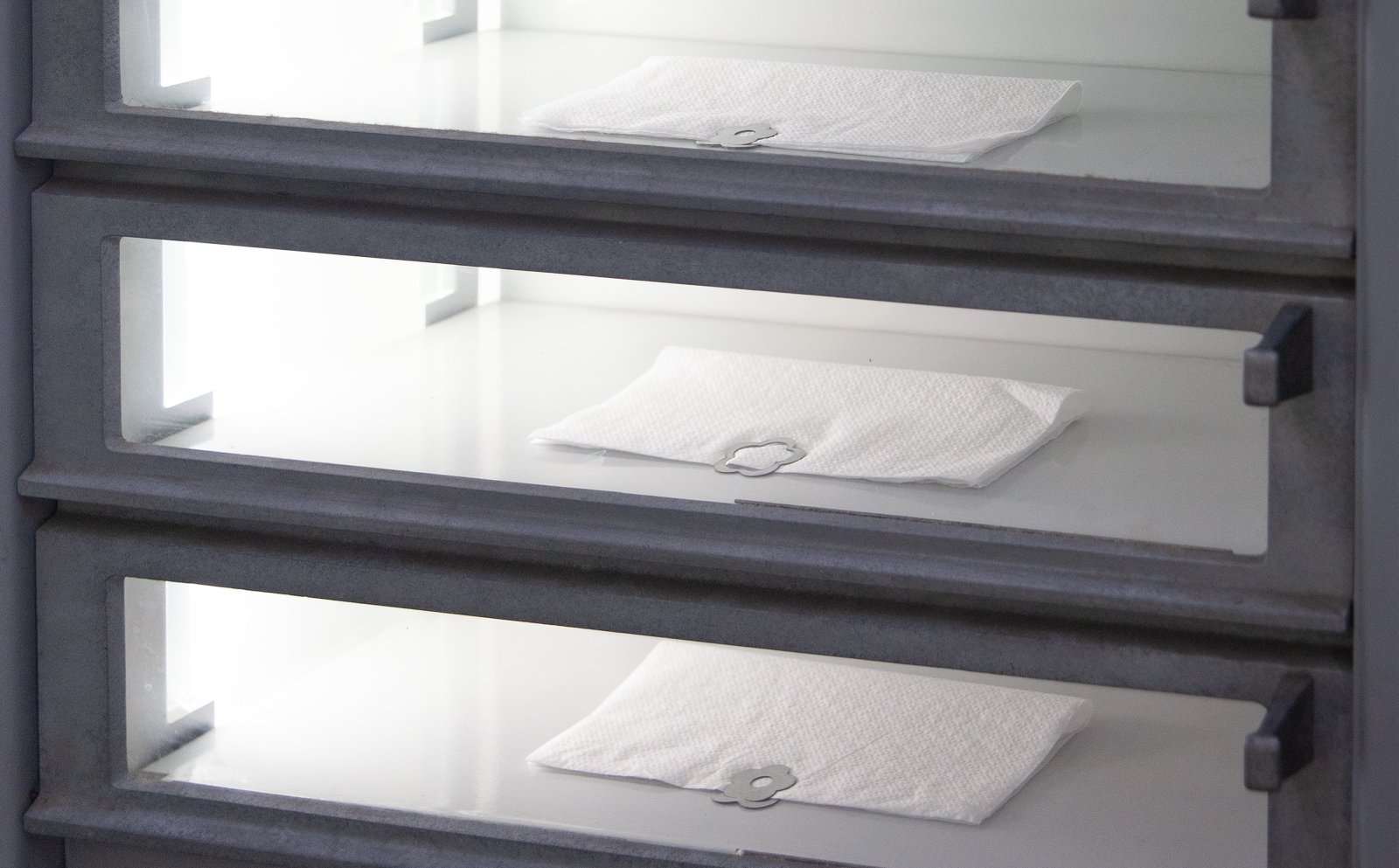 The exhibition opening took place from 07:00-10:00 a.m. A breakfast was served with cutlery from different airlines. A small edition of napkins with a metal clip could be purchased in a vending machine.
