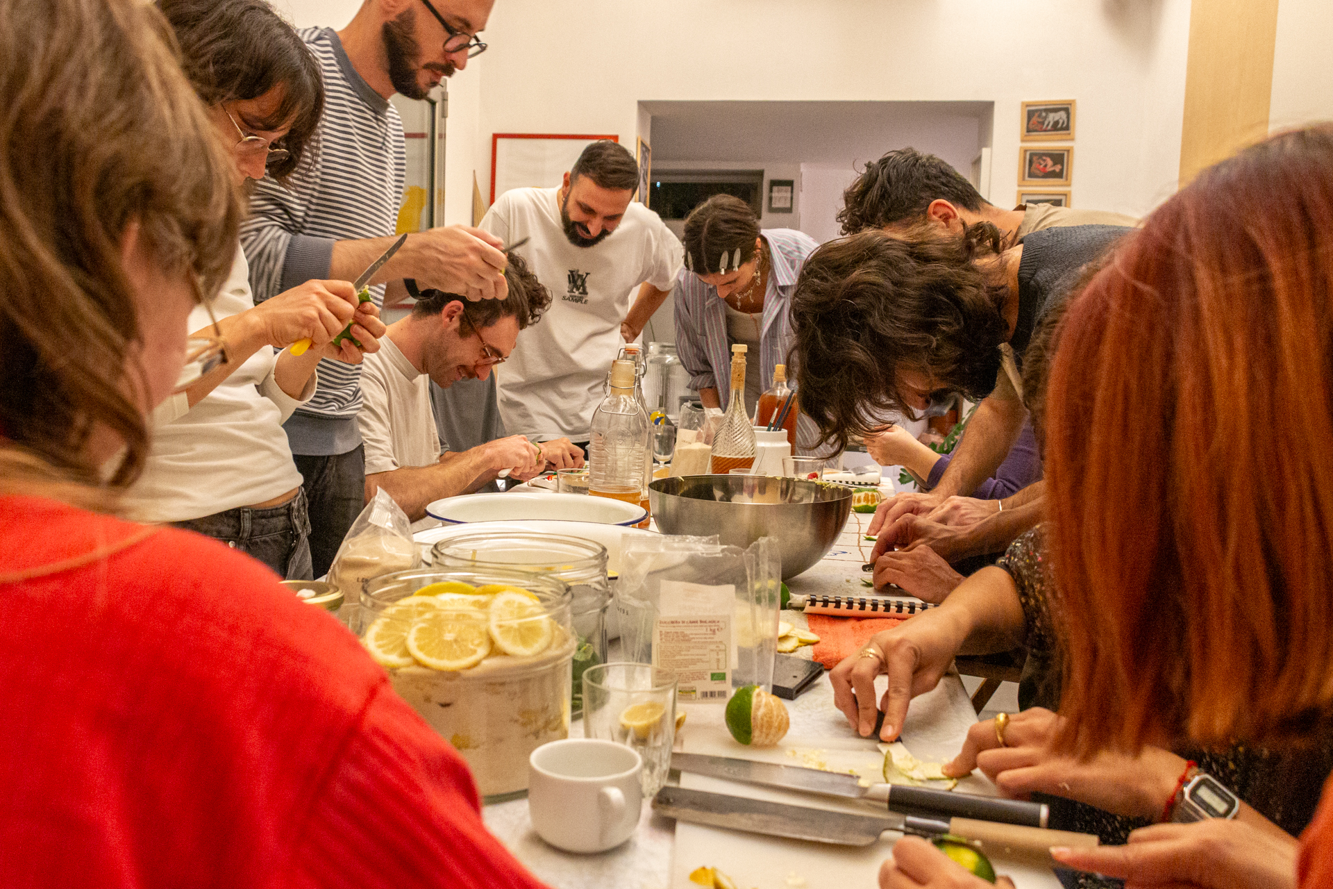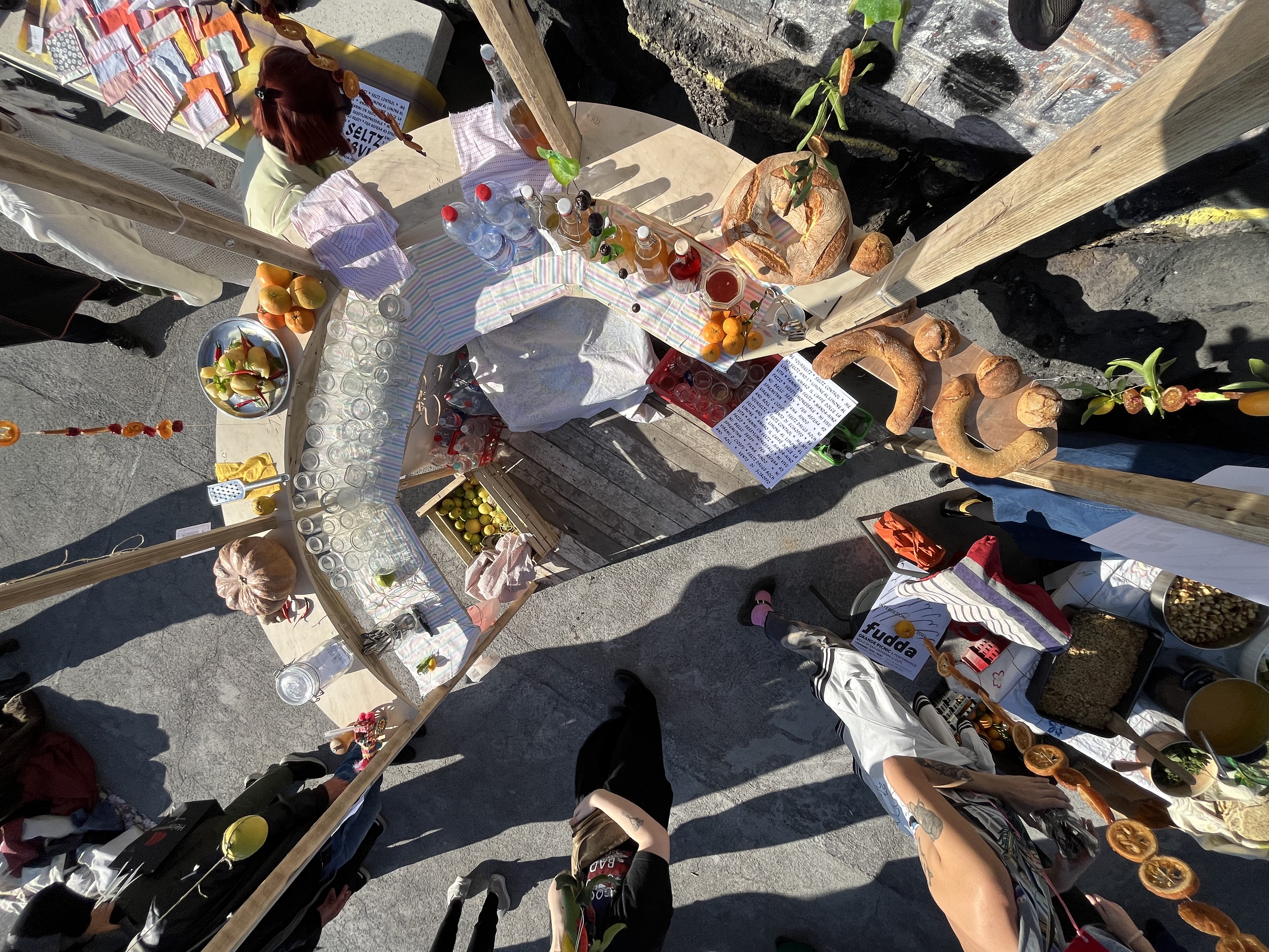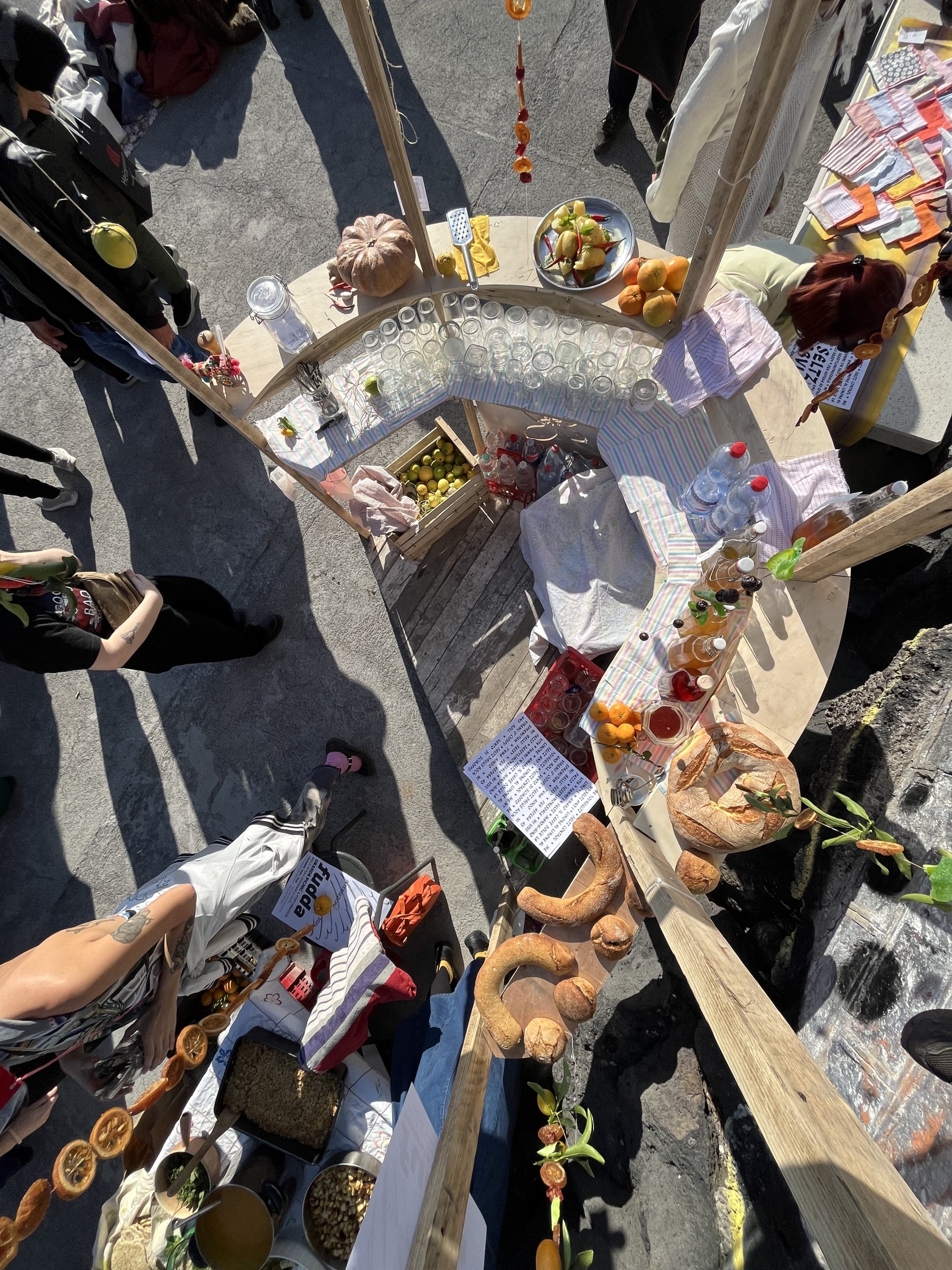 A project with Julia Walk. As part of the festival fudda, a workshop was held on fermentation, soft drinks and recycling materials. Together with the participants, a kiosk was designed and built as a display for the festival. One of the aims was to investigate forms of coexistence and cooperation through the intertwining of culinary, sculptural or performative practices.